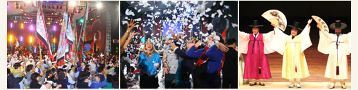 This culinary festival celebrates Jeonju bimbibap and all the other dishes that have made Jeonju a 'food province.' Programs at the Jeonju Bibimbap Festival include an exhibition and sampling of traditional food, a number of cooking contests, a large exhibition of 101 types of bibimbap, and demonstrations on how to cook traditional bibimbap. |
