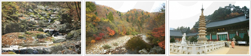 Mount Odaesan straddles Pyeongchang and Gangneung and is comprised of 5 peaks with Birobong Peak (1,563 meters above sea level) at the center. In addition to thick forests and gentle slopes that are perfect for hiking, the mountain hides within its folds the thousand-year-old Woljeongsa Temple, Sangwonsa Temple, and many national treasures and Buddhist cultural assets.